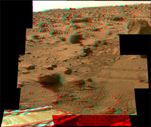 This is a color stereo image created with sol 18 data. To get the "3D"