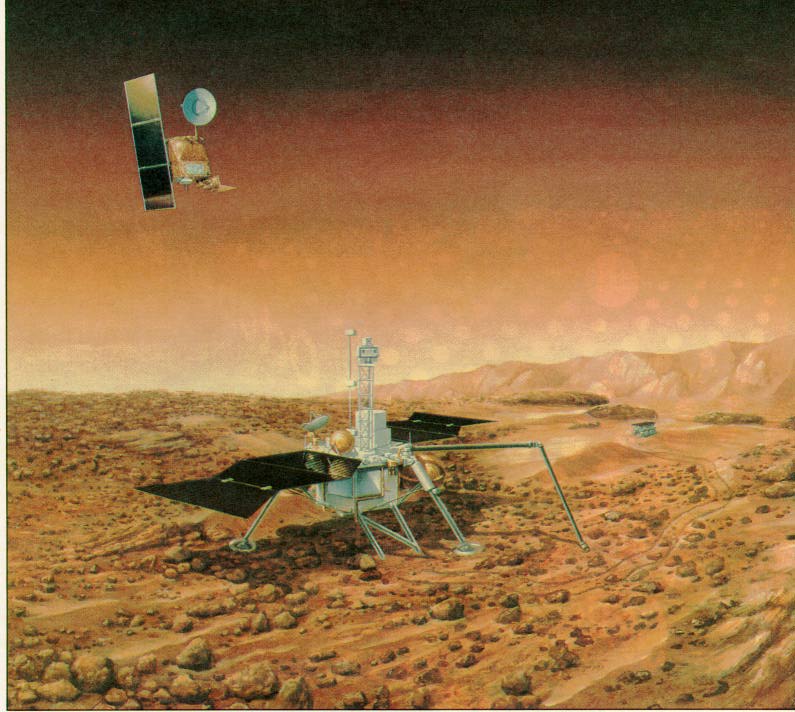 Rendition of lander and orbiter Edward Stone, Director of NASA's Jet Propulsion Laboratory, announced the selection after a fast-paced, industry-wide competition lasting only 2 months. The estimated value of the contract is $92.2 million. JPL manages the Mars Surveyor Program for NASA's Office of Space Science, Washington, D.C.