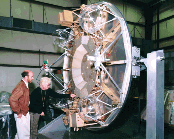 In Phase 1, everything is laid out in a "2-dimensional configuration". For instance, the cruise and lander stages sit side by side, electrically connected through jumper cables so that we can easily get to a piece of equipment in case of a problem. Both engineering and flight model subsystems are used in Phase 1 which is like a dress rehearsal, problem shakeout period for Phase 2, the formal space qualification phase. This begins in January 1996 with all flight model equipment now on board. Here we assemble the flight system for the first time, and it goes together sort of like "Russian nested dolls": the lander folded up around the rover which is in turn enclosed inside the aeroshell/backshell cocoon.