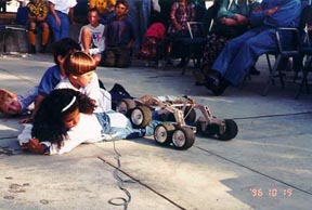 Summer Rose Fishman watches as the 8-wheel demonstration rover