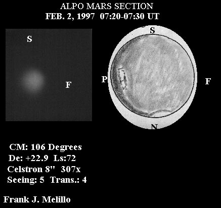 features. Equatorial white clouds were seen along the evening terminator.