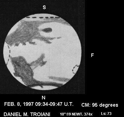 Notes: Very bright evening limb cloud. Solis Lacus was very dark and in