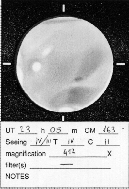 (as drawn) with a brighter core. Very bright white cloud at the preceding