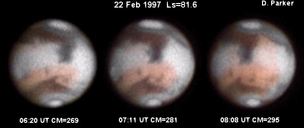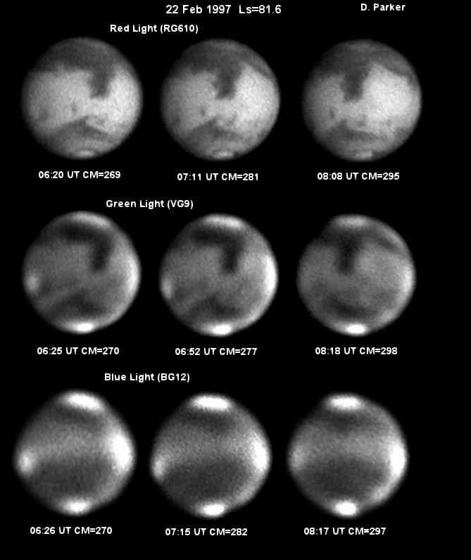 Images dp_feb-22.jpg and dp_feb-22bw.jpg were taken by Don Parker, Coral Gables, Florida (USA). He uses a Lynxx PC camera, 16-in (41cm) Newtonian. Eyepiece projection is at f/49.3. Integration times are as follows (NOTE: South-east winds - 8-15 kts. Broken clouds - seeing only 4-5):