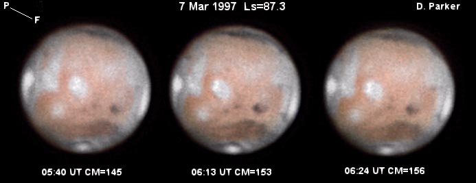 Images dp_mar-07.jpg, dp_feb-24bw.jpg and dp_mar07c.jpg were taken by Don Parker, Coral Gables, Florida (USA). He uses a Lynxx PC camera, 16-in (41cm) Newtonian. Eyepiece projection is at f/47.8. Integration times are as follows (NOTE: High easterly winds - 8-15 kts.):