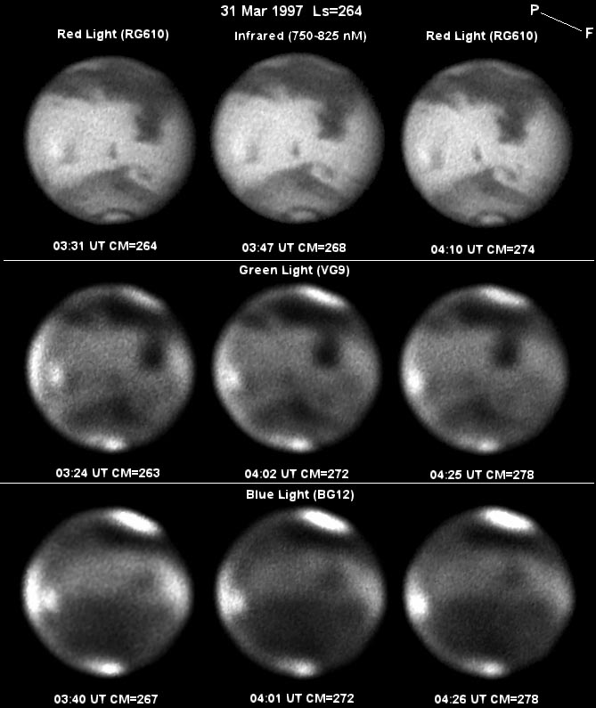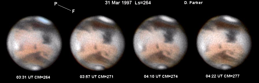 Images dp_mar-31.jpg and dp_mar-31bw.jpg were taken by Don Parker, Coral Gables, Florida (USA). He uses a Lynxx PC camera, 16-in (41cm) Newtonian. Eyepiece projection is at f/47.8. Integration times are as follows (NOTE: Seeing generally poor (4-5); Pre-front W wind (0-2 kts)):