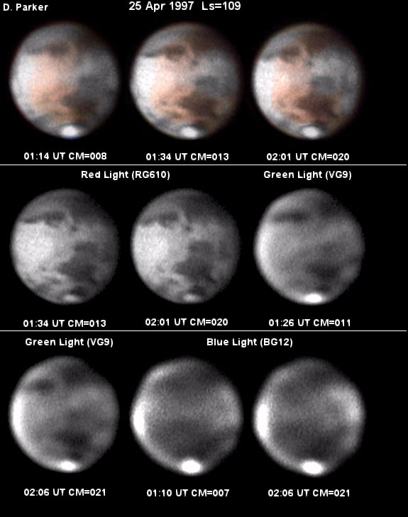 Image dp_apr-25.jpg was taken by Don Parker, Coral Gables, Florida (USA). He uses a Lynxx PC camera, 16-in (41cm) Newtonian. Eyepiece projection is at f/47.8. Integration times are as follows (NOTE: Seeing good (7-8) but high steady winds NE at 7-15 kts. Transparency poor (3.5-4m); haze and occasional high clouds.):