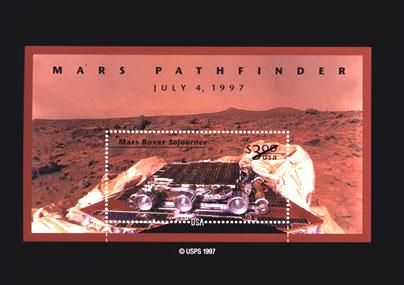 "As one of the most significant achievements in the history of America’s space program, it is fitting that the Pathfinder Mission be honored on a U.S. postage stamp," said Postmaster General Marvin Runyon. "When this stamp lands in stamp collections or on Priority Mail pieces nationwide, it will be a reminder of the unmatched ingenuity that leads the world in space exploration."