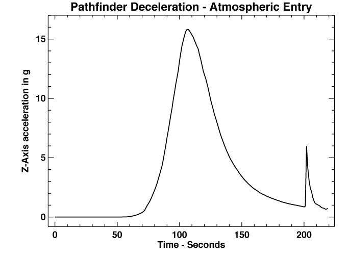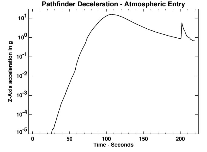 | This figure shows the entry vehicle deceleration in g's along its flight