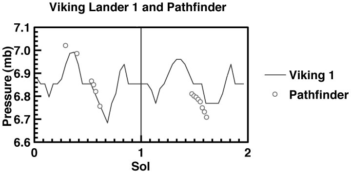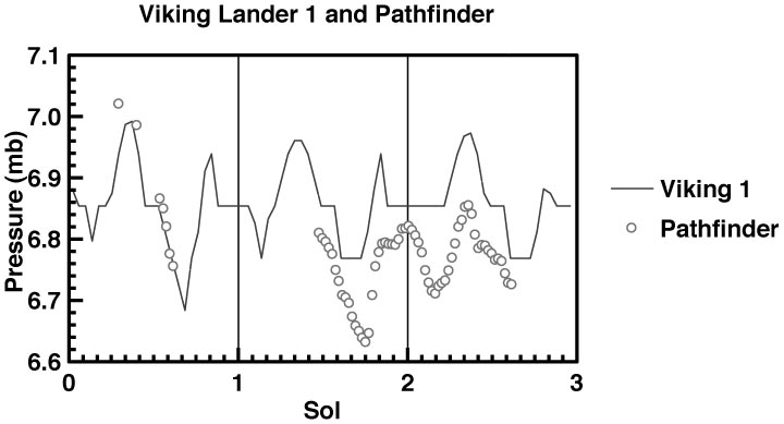 distinction between the Pathfinder and Viking lander 1 pressure measurements