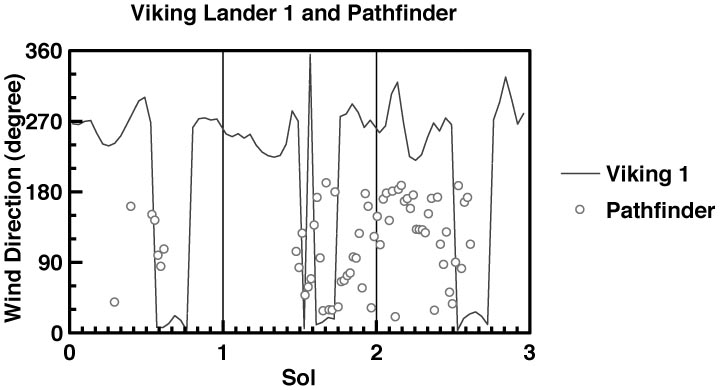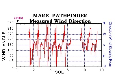 Wind direction at the Mars Pathfinder site is indicated