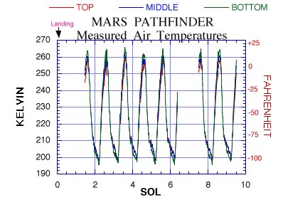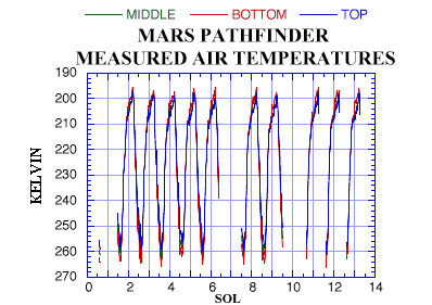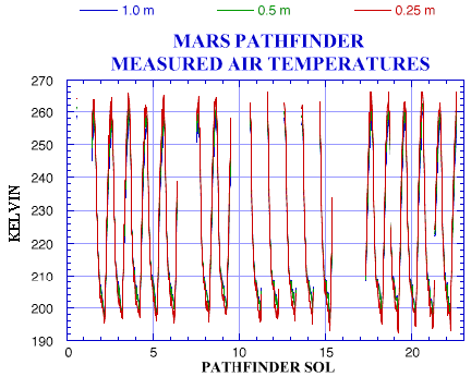 | Air temperatures measured by the Mars Pathfinder Lander
