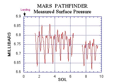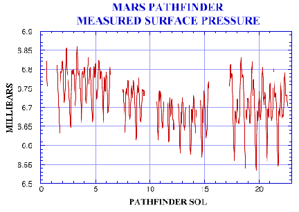 the atmospheric pressure on the Martian surface. Pressures measured during