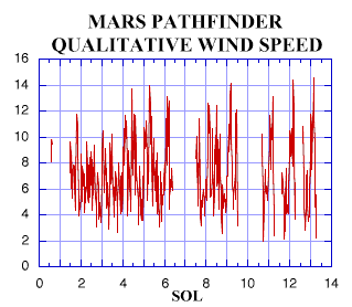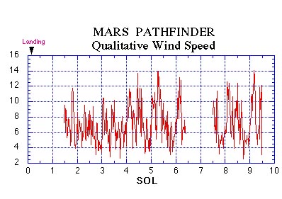 the mission's initial 10 sols, winds were strong during early morning hours.