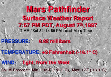 | Surface Weather Report - Sol 14, 6:34 am Mars Time (17 July 1997) |