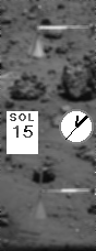 The first movie shows the top two windsocks responding to winds around noon on Sols 15 and 19-22. Wind speed and direction varies over the observations comprising this movie, but gentle breezes from the west, generally less than 8 m/sec (18 miles/hr), predominate. The second movie is a compilation of morning windsock observations from Sols 15 and 19-22. The top windsock is more likely to encounter strong winds than the middle and bottom units, but here the small deflections from vertical indicate low winds, generally less than 6 m/sec (13 miles/hr).