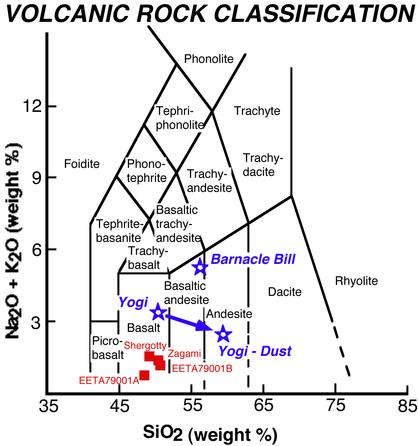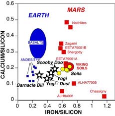 Mars. The Martian meteorites (as well as Viking soil analyses) all plot