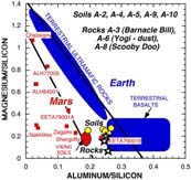 In this diagram, preliminary Pathfinder APXS analyses of soils (yellow
