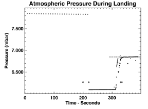 (dots) measured by the Pathfinder MET instrument during landing period of