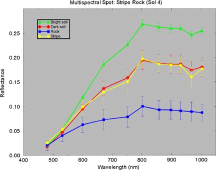 obtained by the IMP camera was of the Stripe Rock on Sol 4. A multispectral