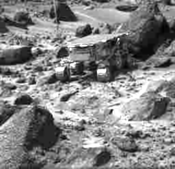 This image of the Mars Pathfinder lander was taken from the Sojourner