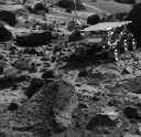 on Sol 39. At the end of the film the rover bumps in to the rock "Hassock." |