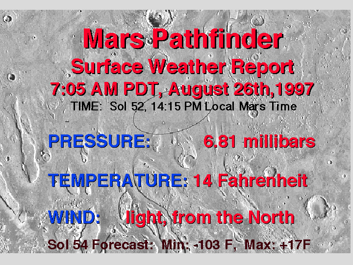 Mars Pathfinder Mission, please call our Mission Status Report line at 1-800-391-6654. |