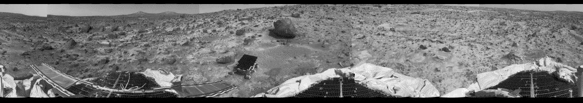 image was taken, Sojourner was still latched to one of the lander's petals,