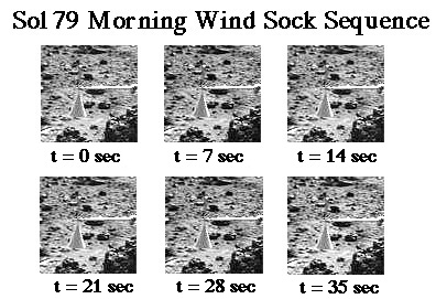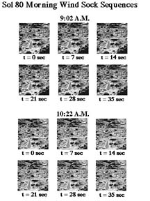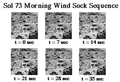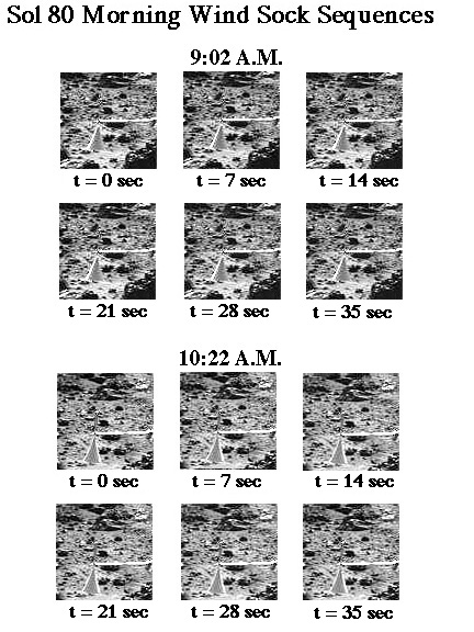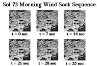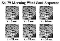 | This set of images shows the Pathfinder wind socks on the morning of Sol
