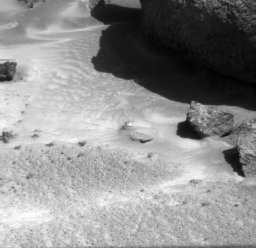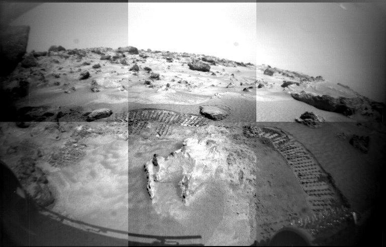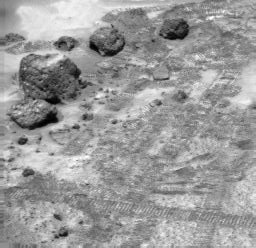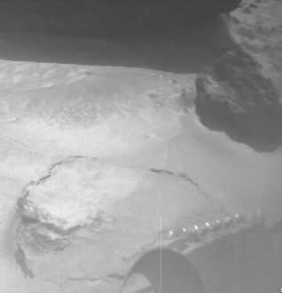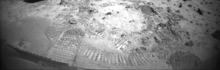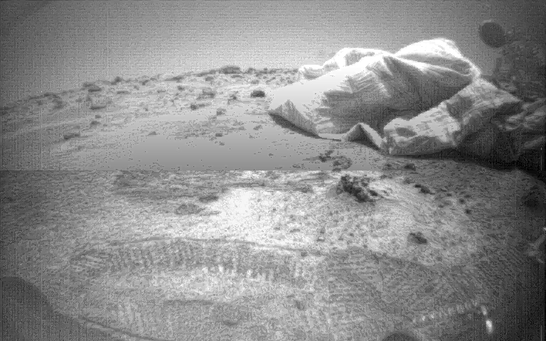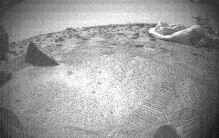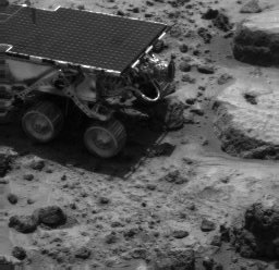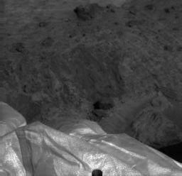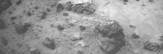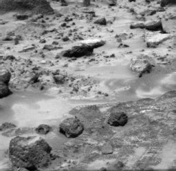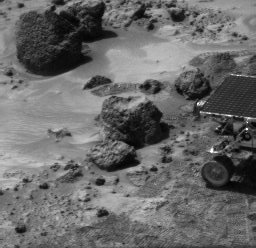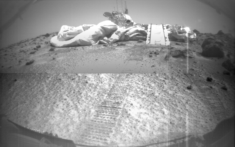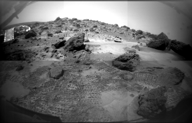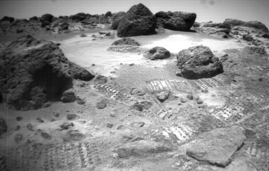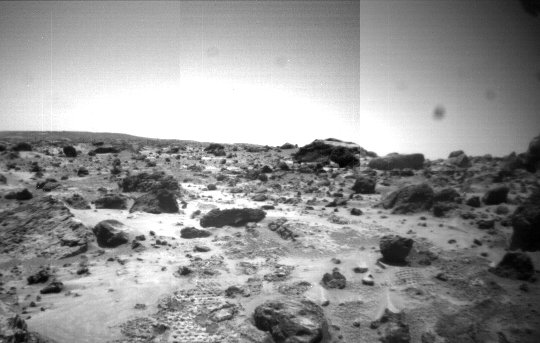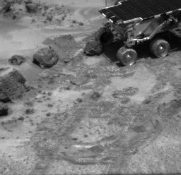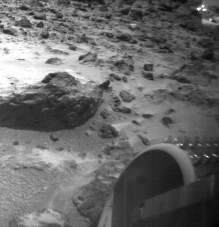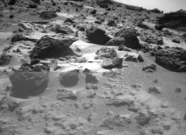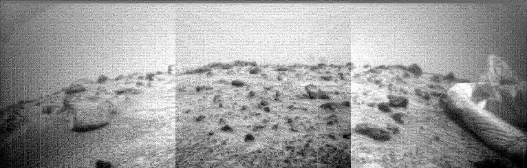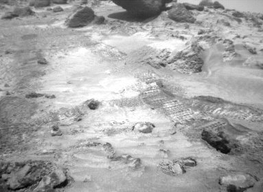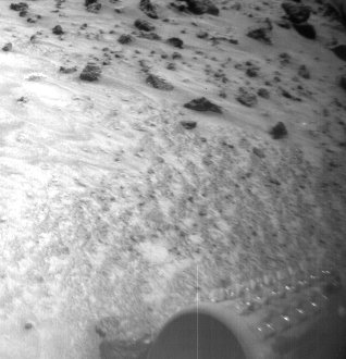 | sol14-2.jpg | 318X330 23.8KB | SOL14 Rover B&W front image of soil | sol14-3.jpg | 768X491 70.2KB | SOL14 Rover B&W image of terrain |