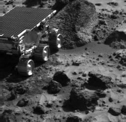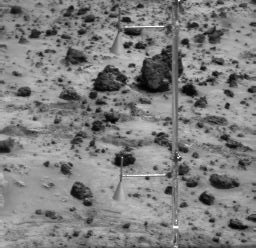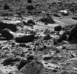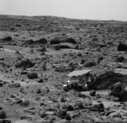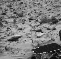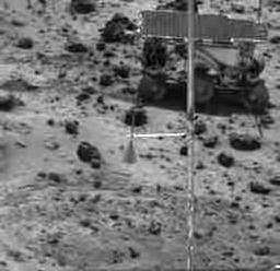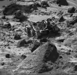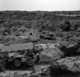 | sol12-9.jpg | 256X248 13KB | SOL12 IMP B&W of rover WAE experiment | sol12-10.jpg | 256X248 19KB | SOL12 IMP B&W Mars terrain and Souffle rock |