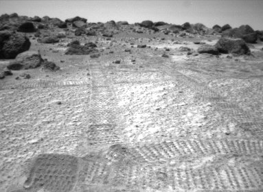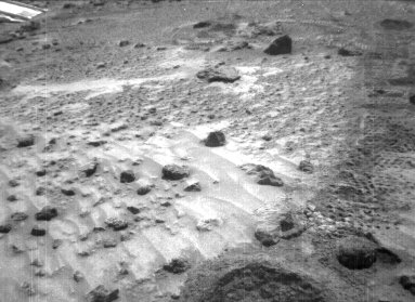 | sol13-8.jpg | 256X248 20.4KB | SOL13 IMP B&W image of rover tracks | sol14-1.jpg | 318X170 14.7KB | SOL14 Rover B&W front image of tracks |
