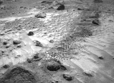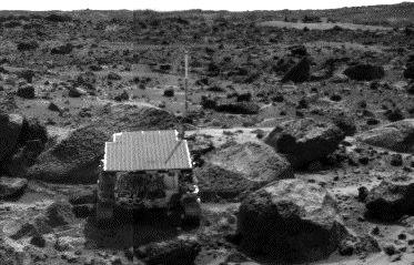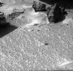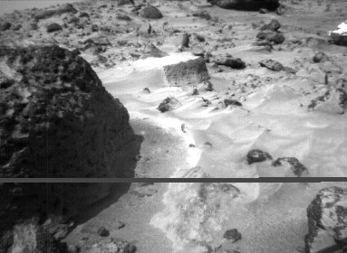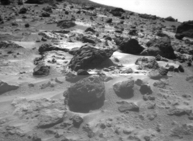 | sol72-1.jpg | 383X279 50.7KB | SOL72 Rover B&W a view from the rock garden | sol72-2.jpg | 383X280 53.8KB | SOL72 Rover B&W closeup of Chimp rock |