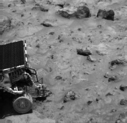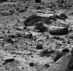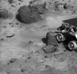 | sol26-4.jpg | 540X181 20KB | SOL26 Rover B&W image of rocks in front of rover | sol26-5.jpg | 256X248 19KB | SOL26 IMP B&W of rover nearing Mermaid Dunes |