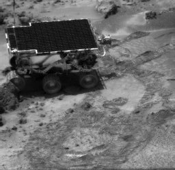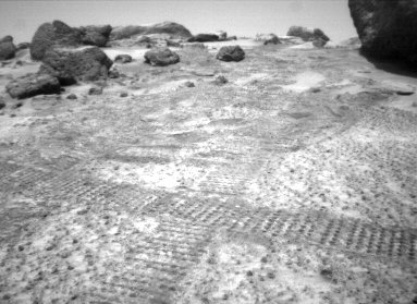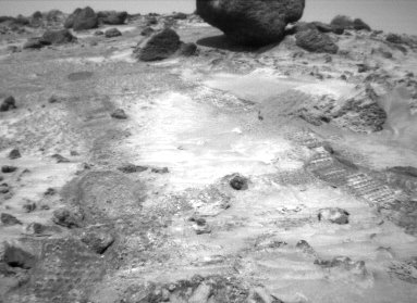 | sol18-2.jpg | 383X279 31.8KB | SOL18 Rover B&W front image of tracks | sol18-3.jpg | 383X279 27.2KB | SOL18 Rover B&W Cool view of Yogi and terrain! |