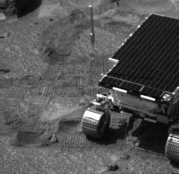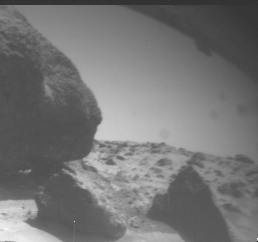 | sol79-1.jpg | 242X383KB | SOL79 Rover B&W Rear Camera of APXS on Chimp. Yes! | sol80-1.jpg | 488X243 93.8KB | SOL80 IMP B&W EOD image of Rover on Chimp Yeah Baby! |