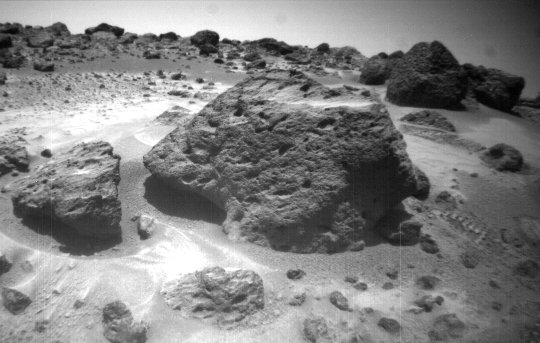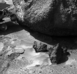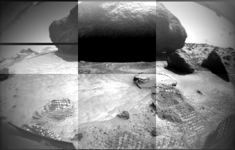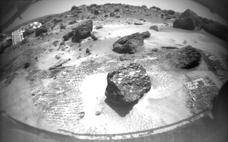 | sol4-9.jpg | 768X480 241.3KB | SOL4 Rover rear image near Yogi rock; B&W | sol4-10.jpg | 383X279 53.4KB | SOL4 Rover rear image near Yogi rock; B&W |