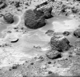 | sol4-16.jpg | 255X249 32.5KB | SOL4 Rover image of rover tracks by Yogi rock; B&W | sol5-1.jpg | 768X491 235.8KB | SOL5 Rover image rear view of Yogi rock; B&W |