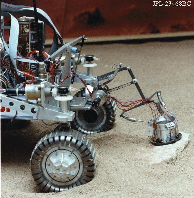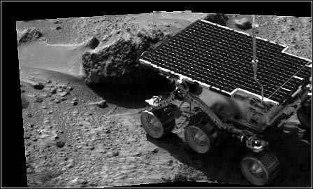 | sol42-1.jpg | 384X280 26.8KB | SOL42 Rover B&W image of Wedge rock | sol42-2.jpg | 256X248 18.0KB | SOL42 IMP image of Rover by Flattop rock |
