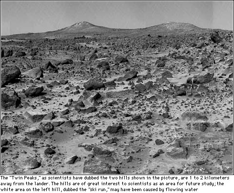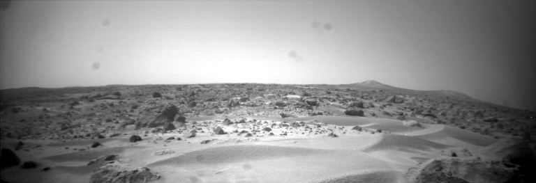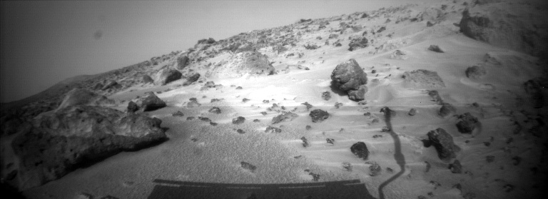 | sol76-1.jpg | 768X263 116.3KB | SOL76 Rover B&W looking at Twin Peaks | sol77-1.jpg | 256X248 45.4KB | SOL77 IMP B&W EOD image of Rover on Chimp OOPS! |