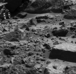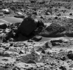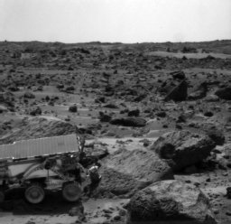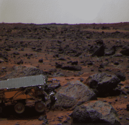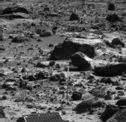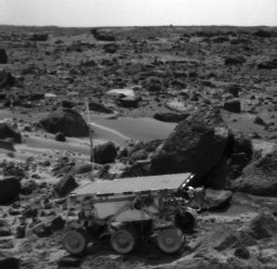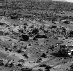 | sol74-3.jpg | 256X248 53.4KB | SOL74 IMP B&W EOD with rover behind Chimp rock | sol74-4.jpg | 256X248 53.9KB | SOL74 IMP B&W Terrain behind rover looking South |
