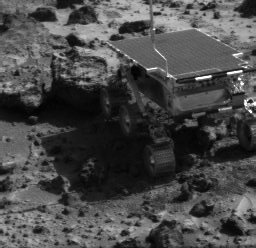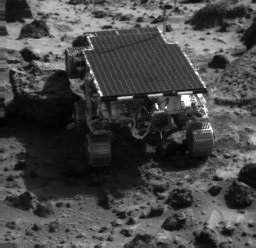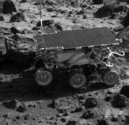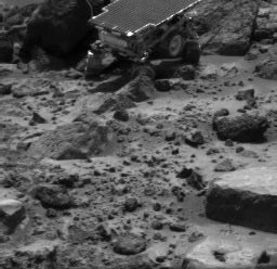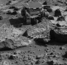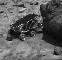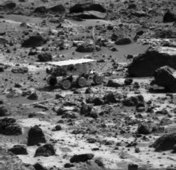 | sol6-3.jpg | 256X248 33.1KB | SOL5 IMP image of rover with wheels straight; B&W | sol6-4.jpg | 256X248 33.3KB | SOL5 IMP image of rover going to Yogi rock; B&W |