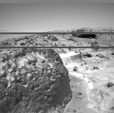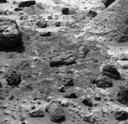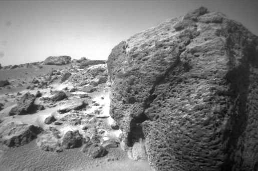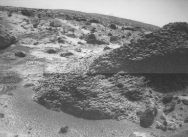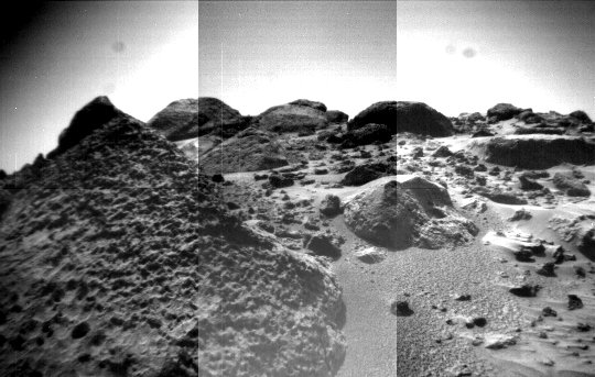| sol72-3.jpg | 383X279 51.4KB | SOL72 Rover B&W another view from the rock garden | sol72-4.jpg | 383X280 85.7KB | SOL72 Rover B&W closeup right camera view of Chimp rock |