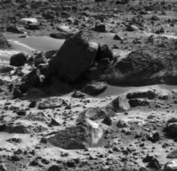 | sol5-6.jpg | 256X248 49.9KB | SOL5 IMP image of terrain behind rover, notice antenna; B&W | sol5-7.jpg | 256X248 49.8KB | SOL5 IMP image of Yogi rock; B&W |