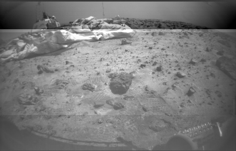 | sol27-1.jpg | 261X111 7.3KB | SOL27 Rover B&W left front wheel in Mermaid Dunes | sol27-2.jpg | 768X279 30.5KB | SOL27 Rover B&W of lander base from Mermaid Dunes |