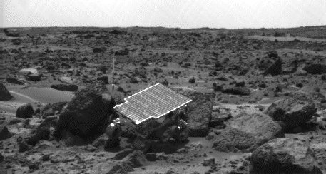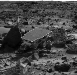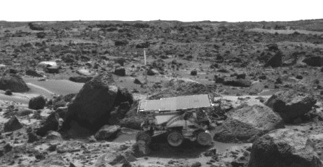 | sol12-1.jpg | 766X244 70KB | SOL12 Rover B&W N-E view of terrain & lander | sol12-2.jpg | 256X248 13KB | SOL12 IMP Sojourner turn near Yogi |