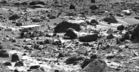 | sol32-1.jpg | 540X343 40.5KB | SOL32 Rover B&W image of Ender rock | sol32-2.jpg | 768X491 60.4KB | SOL32 Rover B&W image of lander & side of Shark rock |